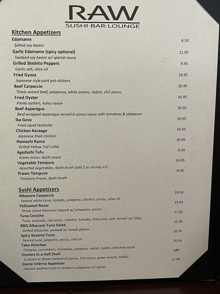 Raw Sushi Bar Lounge is a trendy and upscale Japanese lounge located in Elk Grove, CA. With a welcoming atmosphere and friendly staff, this lounge offers a variety of fresh and delicious sushi options. Customer reviews rave about the high-quality sashimi, sesame chicken, Dante's Inferno roll, and beef carpaccio. The cocktails, like the lychee mojito and old fashion, are also highly recommended. The menu features unique flavors and creative dishes, with a focus on premium ingredients and beautiful presentation. Customers appreciate the attentive service and the well-decorated, spacious ambiance. Whether you're looking for a special dinner or a fun hangout spot, Raw Sushi Bar Lounge delivers an enjoyable dining experience. Don't miss out on trying their fresh sashimi, flavorful rolls, and refreshing cocktails.